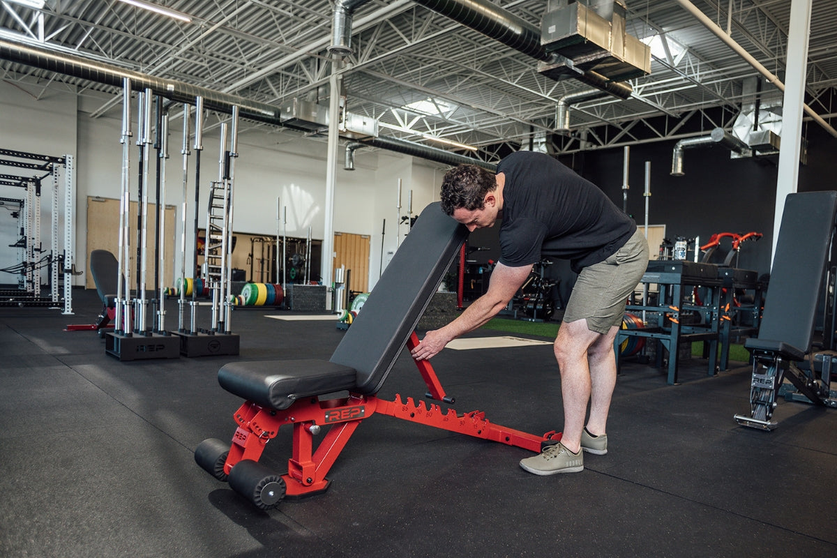 The pads are upgraded, too. New CleanGrip pads are extra dense for added durability and are even grippier than before. The updated back pad is squared off with a greater surface area for more back support and is easier to clean than its predecessor. The 2.0 still has the same seat pad that gets wider and thicker on the front, so it’s more comfortable on the back of your knees when using the Leg Rollers. If you don’t like the wider flare on the front, the seat pad is now reversible. A new, horizontal handle on the leg attachment was designed to stay out of the way when you’re lifting, and it makes the bench easier to move around your gym. In addition to standard matte black, metallic black, red, and blue, the AB-3000 2.0 is also now available in white. Black hardware, rubber endcaps on the ladder adjustment arm, and enclosed wheels all come together to make this a high-quality bench with a patent-pending design. The AB-3000 2.0 has a weight capacity of 454kg (1000lb) and is finished with REP’s signature powder coat.