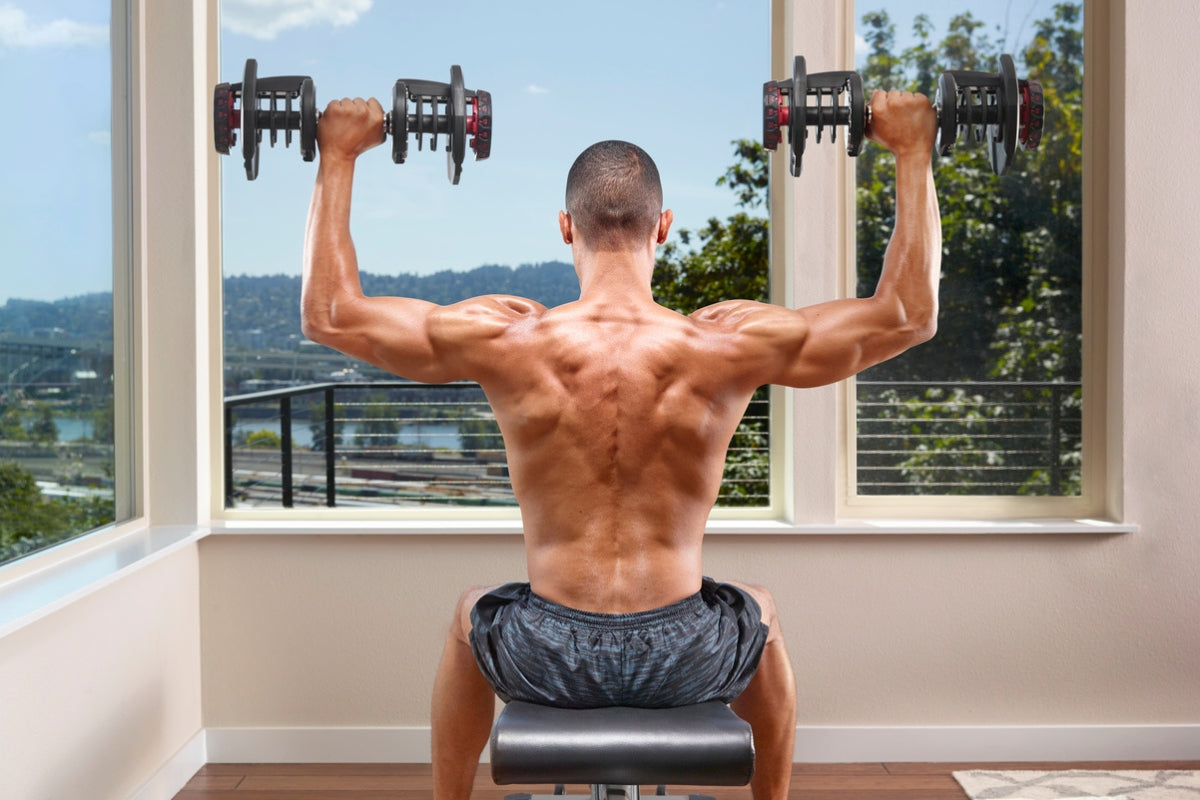 The Bowflex SelectTech 1090i Dumbbells provides adjustments from 17  Weight Settings with the turn of a dial. Rapidly switch from one exercise to the next as you perform a wide variety of Dumbbell exercises. This space-efficient design replaces up to 17 Dumbbells in one compact system (4, 7, 9, 11, 14, 16, 18, 20, 23, 25, 27, 30, 32, 34, 36, 39, and 41 kg ). Get this compact dumbbell solution that fits neatly within nearly any room of your home to maximise the area in your home gym.