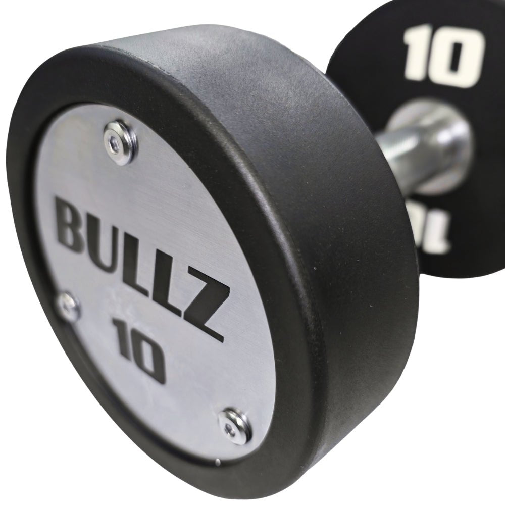 The Bullz Premium Urethane Round Dumbbell Set B is a high-quality, commercial-grade strength training solution designed for both home gyms and professional fitness spaces. Ranging from 2.5kg to 25kg in precise 2.5kg increments, this set provides a complete progression system that supports users at every fitness level—from beginners building foundational strength to experienced lifters focusing on progressive overload and muscle development. Each dumbbell is crafted as a single piece and encased in premium urethane, ensuring exceptional durability, resistance to wear and tear, and a long-lasting, odor-free finish that maintains its sleek appearance over time. Weight label caps are located outside of these dumbbells and weight labels markings are located on the inside, making sure that they are clearly labelled in both directions.