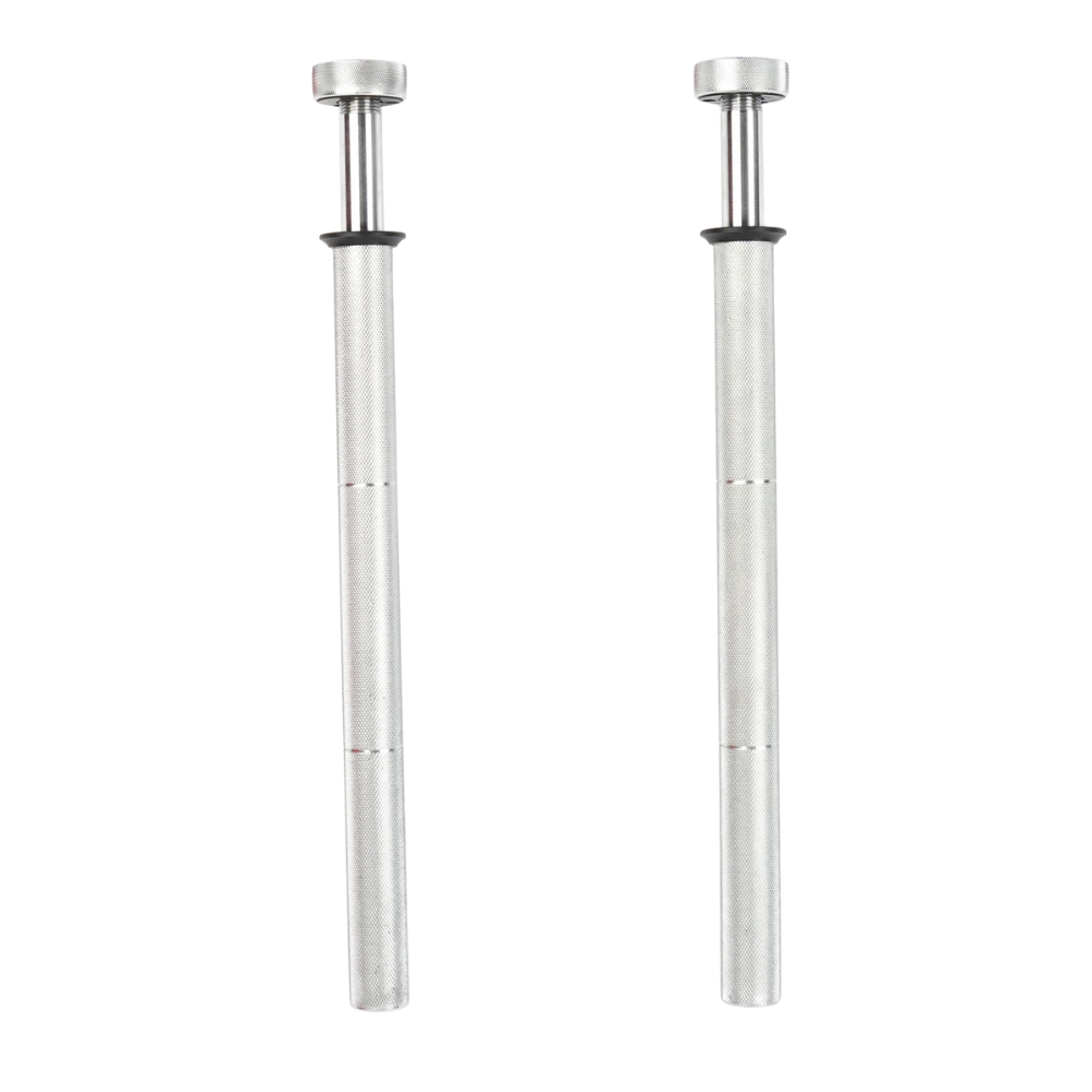 The knurled finish on each bar enhances grip, giving you a secure hold even during intense or high-rep dip sessions. This textured grip reduces slipping and allows for a more confident push, which is especially beneficial when performing weighted dips or pushing your limits. The steel construction paired with knurling makes them more reliable than lightweight or smooth alternatives. Each handle comes with a stopper knob that secures firmly onto the spotter arms. Simply unscrew the stopper knobs to disassemble the dip handles.