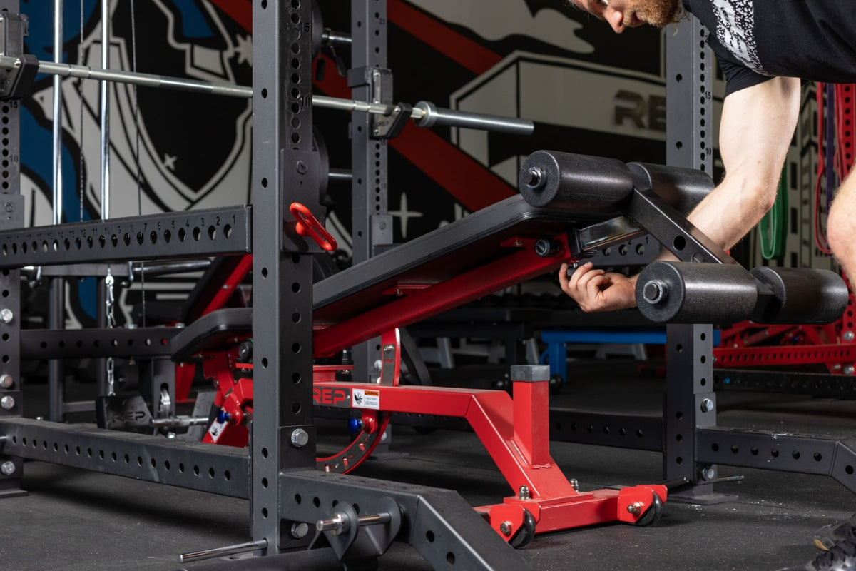 ● The REP Adjustable Bench Leg Roller Attachment can be used on REP Blackwing adjustable bench.