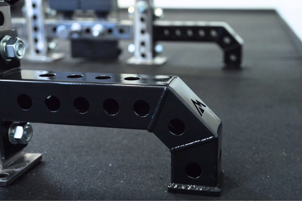 It features laser-cut holes for small attachments like band pegs or weight horns for change plates. It is easy to attach to your system with a bolt-on design. The feet have a high-quality metallic black powder-coat finish. The REP PR-5000 Mini Feet (PRA-5160) are aesthetic, with a laser-cut mountain logo for a premium look.