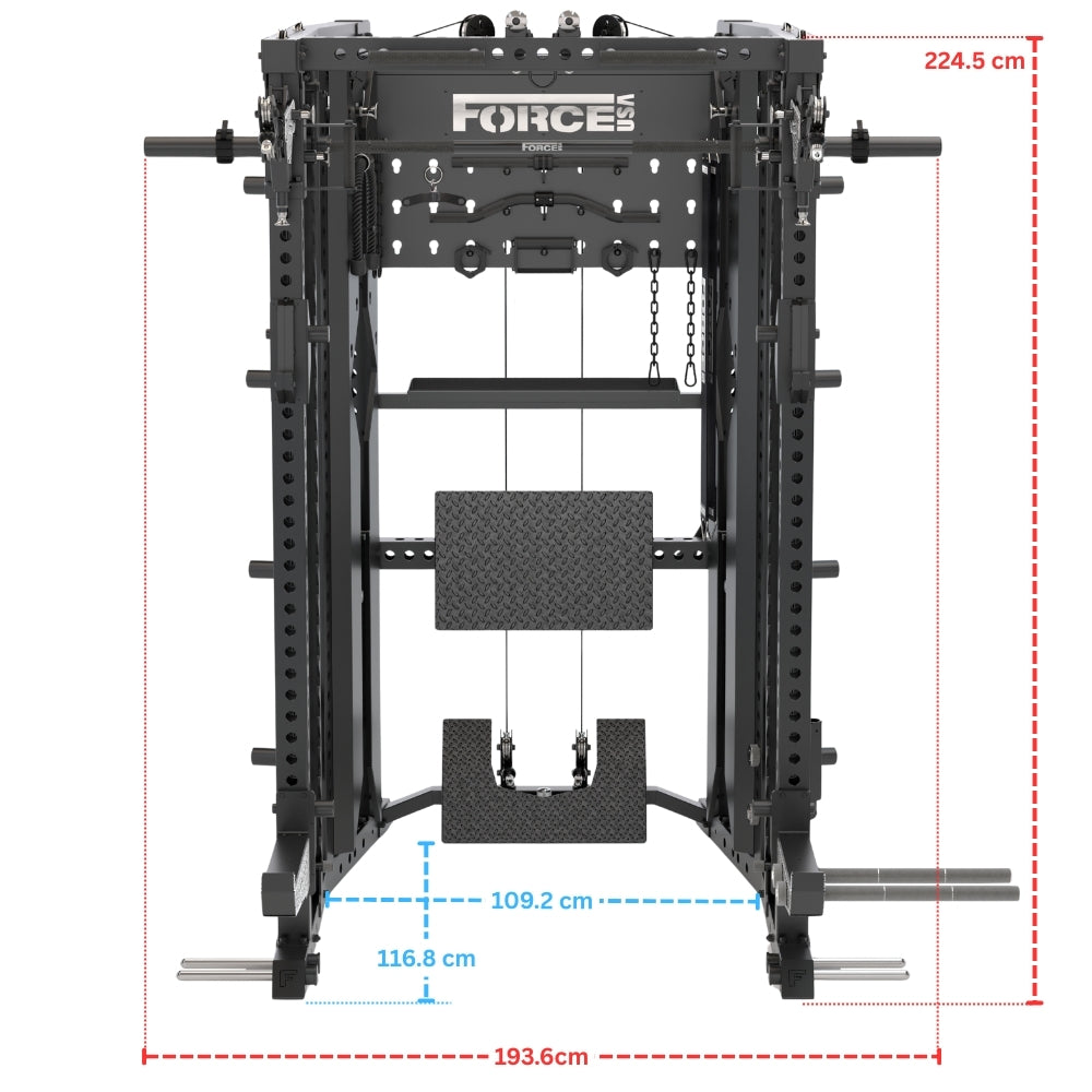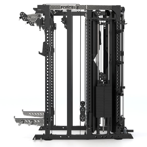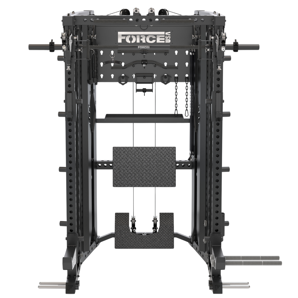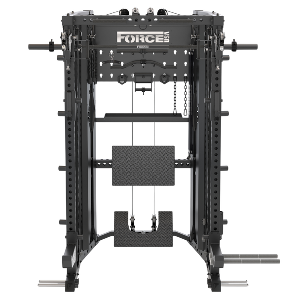 Then comes the game-changer: the patent-pending Sliding Bench. It locks into the lower pulleys to unleash up to 600 lb of cable-driven resistance for leg presses, hack squats, and more. Compact, efficient, and unapologetically strong, the C20 doesn’t just fit your space—it defines it. This is what happens when engineers lift. This is the Force USA C20 All-In-One Trainer.