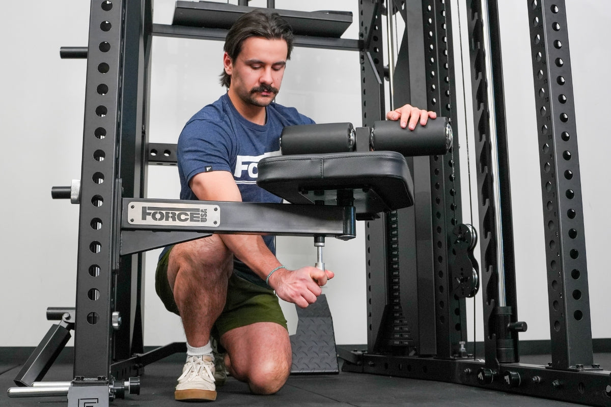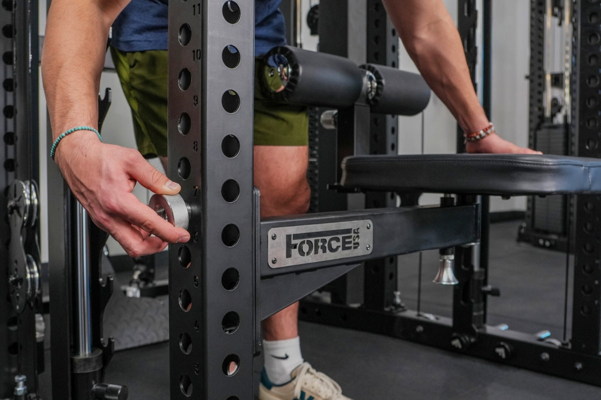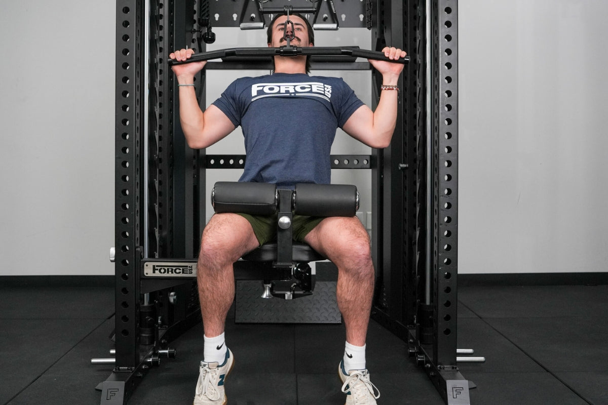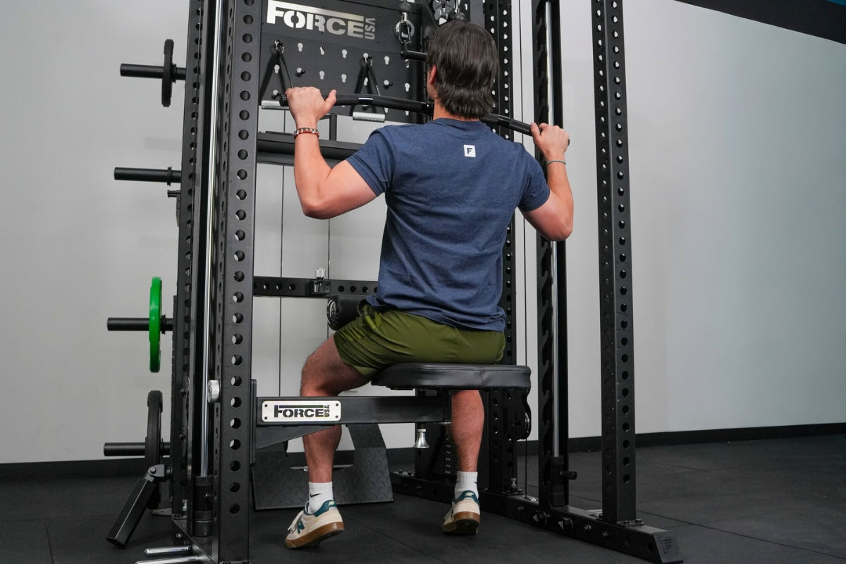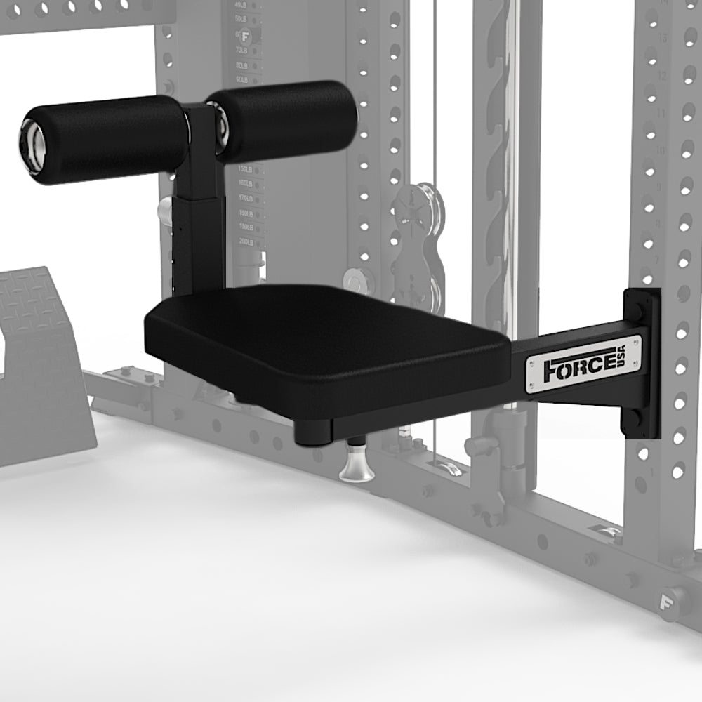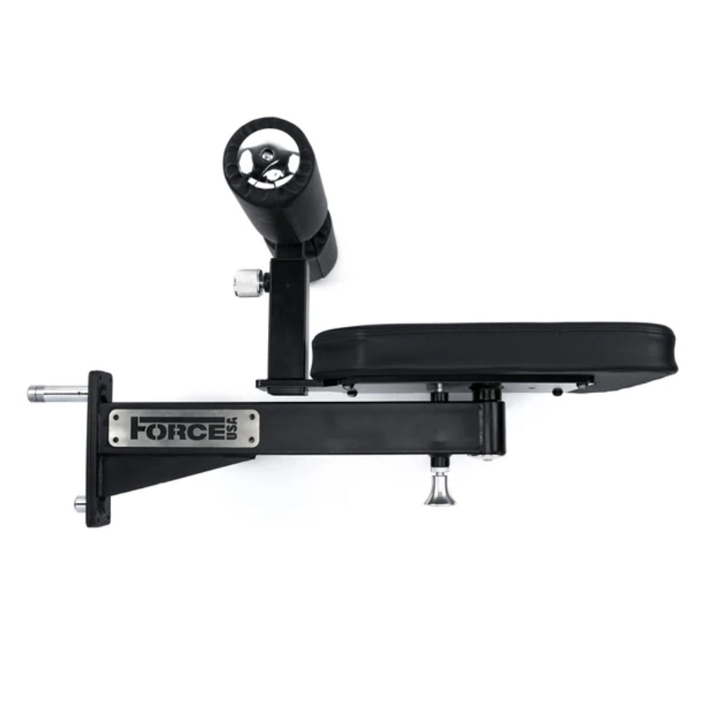 An ergonomic, outward-facing back support offers added lower-back stability during overhead pressing movements, and the seat supports more than 100 exercise variations including lat pulldowns, low rows, reverse flys, bicep curls, shoulder presses and lateral raises. It is fully compatible with all Force USA cable attachments and Freestyle Articulating Pulley Arms within the 3x3 range.