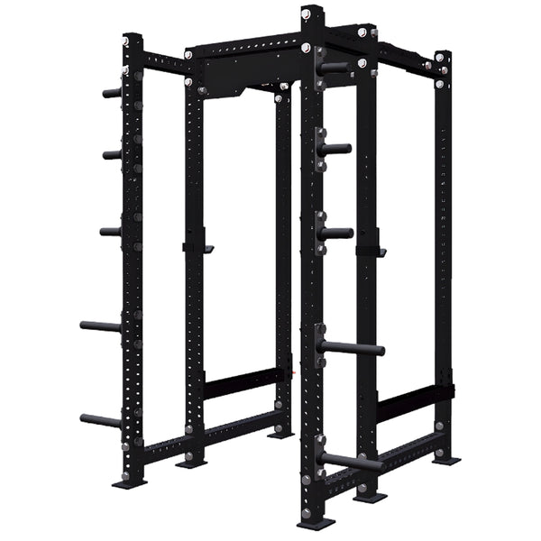 Highly customizable, the PR-5000 supports a wide range of attachments like barbell holders which can be added on separately. This design includes six 15cm weight horns at the top for smaller weights and four 30cm weight horns at body or knee level for larger weights, ensuring organized and efficient storage. The Lowered J-Cups 2.0 feature recessed lining to protect both the bar and the rack and are strategically lowered by 1 inch to fill gaps between the standard 2-inch hole spacing. The Flip-Down Safeties measures 72.9cm and you are able to quickly slide them into the uprights and securely lock them with a clevis quick-release pin. They are equipped with a liner on top to protect your barbell as well as your uprights.