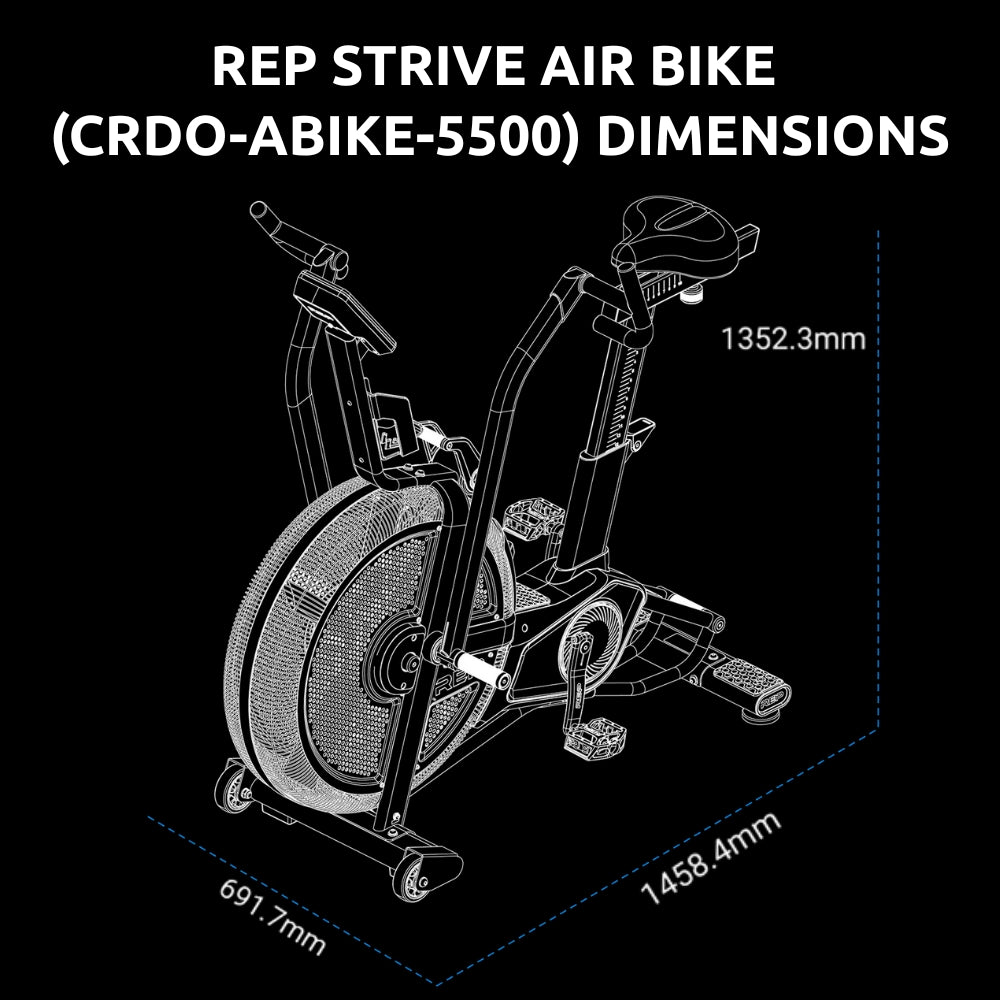 Delivering the durability, smooth performance, and full-body conditioning expected from a premium air bike — while adding a new dimension of resistance control that even the best air bikes simply don’t offer. With resistance levels from 1-3 for easy, low-intensity cardio, 4-6 for that classic fan bike burn, and 7-8 for a workout intensity you didn’t know a stationary air bike could deliver. The Strive Air Bike is the ultimate VO2 max training tool. Tackle low-intensity steady-state sessions to build your base, and HIIT workouts to push your limits while strengthening both your upper and lower body.