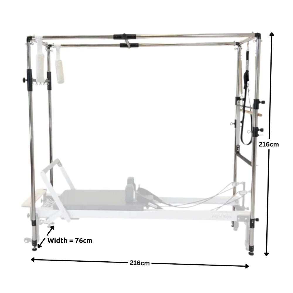 Convert your reformer into a Full Pilates Cadillac. The Align Full Cadillac (Frame Only) for A and C Series Reformer is compatible with Align C8-Pro Pilates Reformer. This frame provides you with the ultimate versatility in your Pilates studio. The full stainless steel upper frame is superior to standard chromed steel frames, ensuring a long and corrosion free life. The Cadillac Frame is supplied complete with the Trapeze, Foot Straps and Foot Support. Please ensure you have the relevant accessories: the Half & Full Cadillac Bracket are required to attach onto the Reformer, and you should also use our Platform Extender & Mattress Convertor to turn your Reformer into a solid bed.