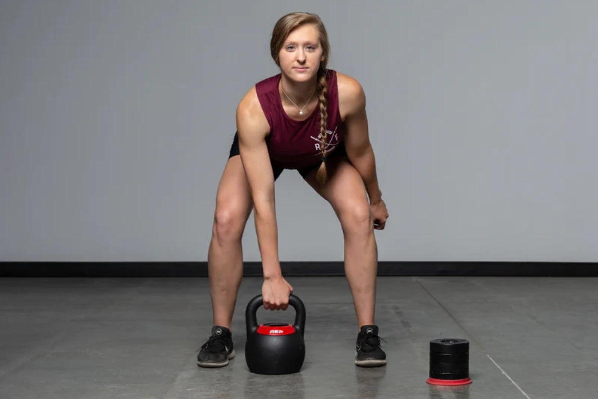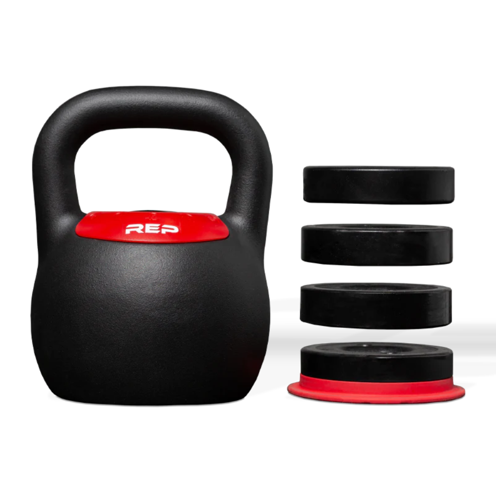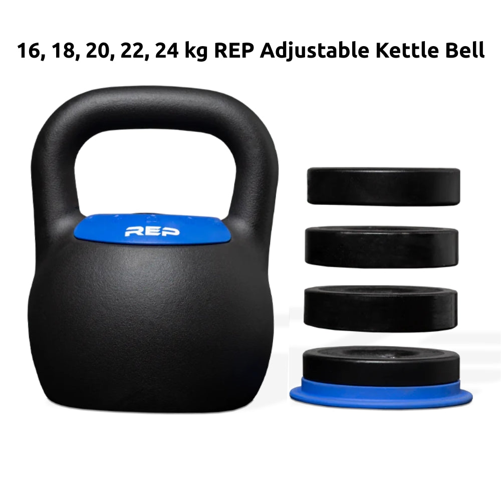 Save space in your home gym with REP’s Adjustable Kettlebells. Choose between two different sized kettlebells, each covering five different weight settings. The 16kg kettlebell can be adjusted to 8, 10, 12, 14, and 16kg. The 24kg kettlebell has a range of 16, 18, 20, 22, and 24kg. It’s quick and easy to adjust your weight – one of the fastest and most convenient adjustment on the market. Simply push down the dial, twist and select the indicators to add or remove weight.