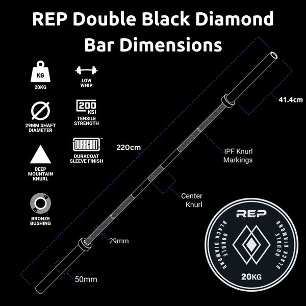 ● REP Double Black Diamond Power Bar does not include Olympic collars. Collars are purchased separately.