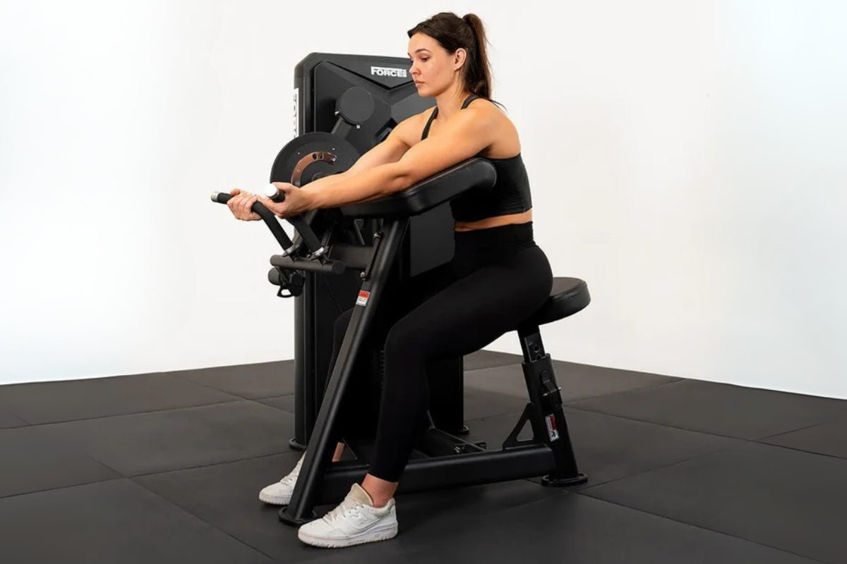 User comfort and exercise precision were central to the design, with an adjustable seat offering six height settings and ergonomic arm pads to maintain proper alignment and reduce strain during isolating movements. The machine also includes an anti-rust aluminum handle mounted with precision bearings to ensure fluid movement, as well as a magnetic weight-selector pin for quick and confident weight changes.