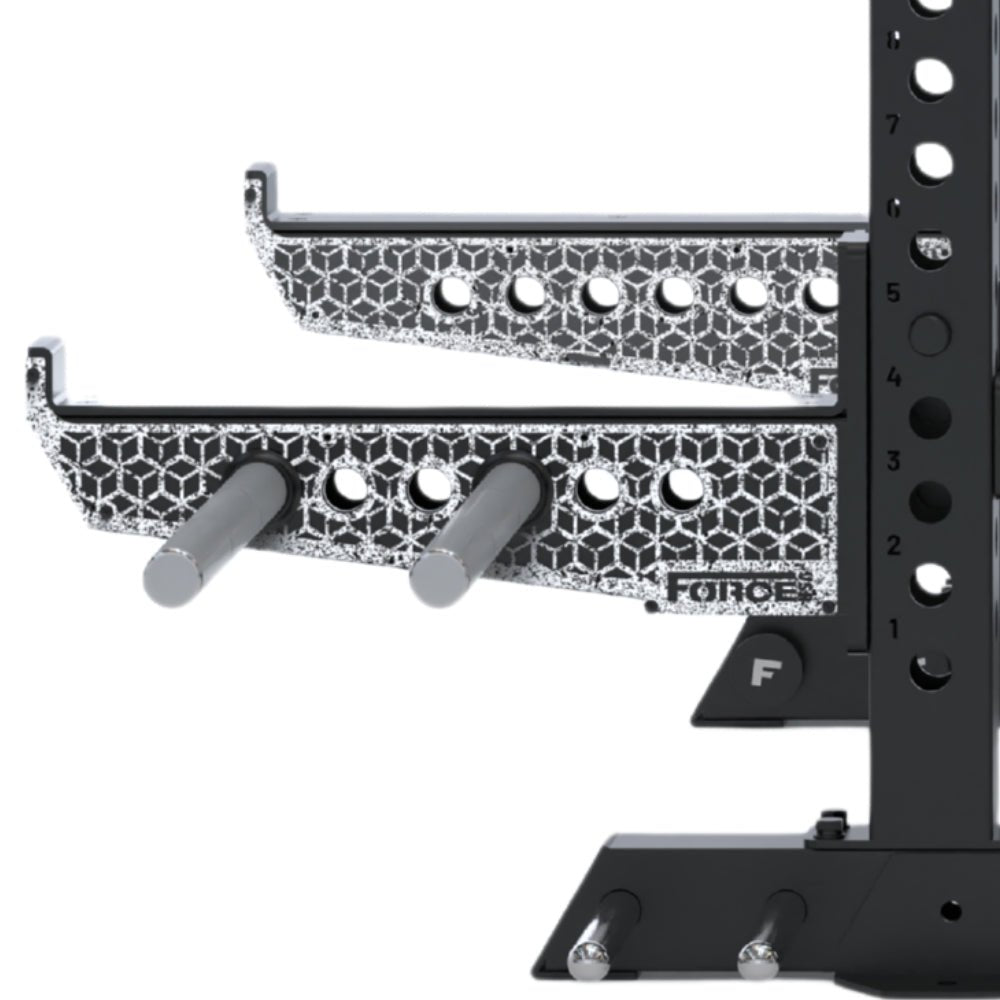 ● 2 x Quick lock Spotter Arms (1-inch holes, dual function dip station)