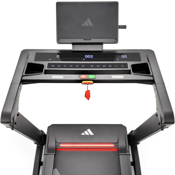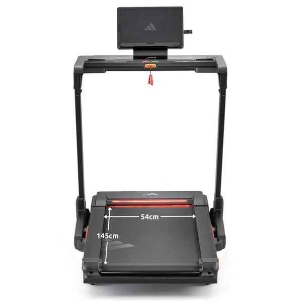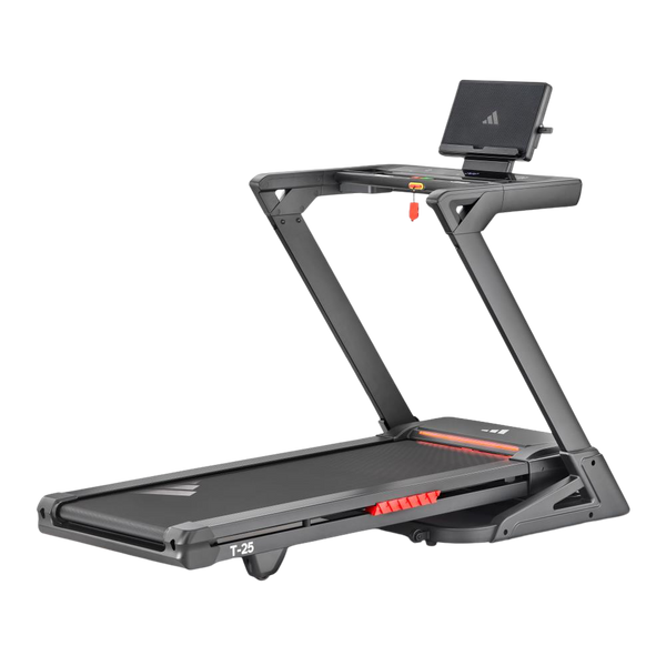 Engineered with a dynamic 2.5 PHP motor, the Adidas T-25 treadmill hits speeds from 1-19 kph, seamlessly taking you from warm-up to full sprint. Whether walking, running, or racing, the T-25 is built to push you further, with 24 pre-set programmes to provide a motivating challenge with every stride. Plus, with 15 levels of motorised incline at your disposal, you can enjoy high-incline walks for low-impact cardio or elevate your runs by upping the gradient. From steady-paced runs to high-intensity intervals, you have the tools required to realise any goal. For a more immersive experience, combining adidas Console+ with the T-25 opens a gateway to the global running community. Enabling Zwift compatibility, experience an immersive online network as you conquer virtual terrains. Console+ also syncs with Kinomap, allowing you to unleash your inner explorer by running real-world routes, taking on challenges, and competing with friends.