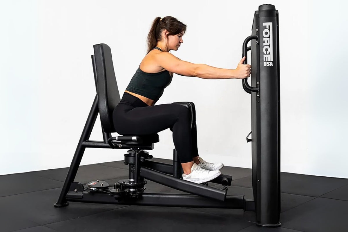 The Force USA Solitude Abductor/Adductor Machine is a high-quality, commercial-grade gym machine built for isolating the inner and outer thigh muscles. The frame is made from heavy-duty steel tubing that ensures maximum durability and stability. It features a weight stack of 100 kg, offering smooth resistance and precise control throughout the full range of motion.