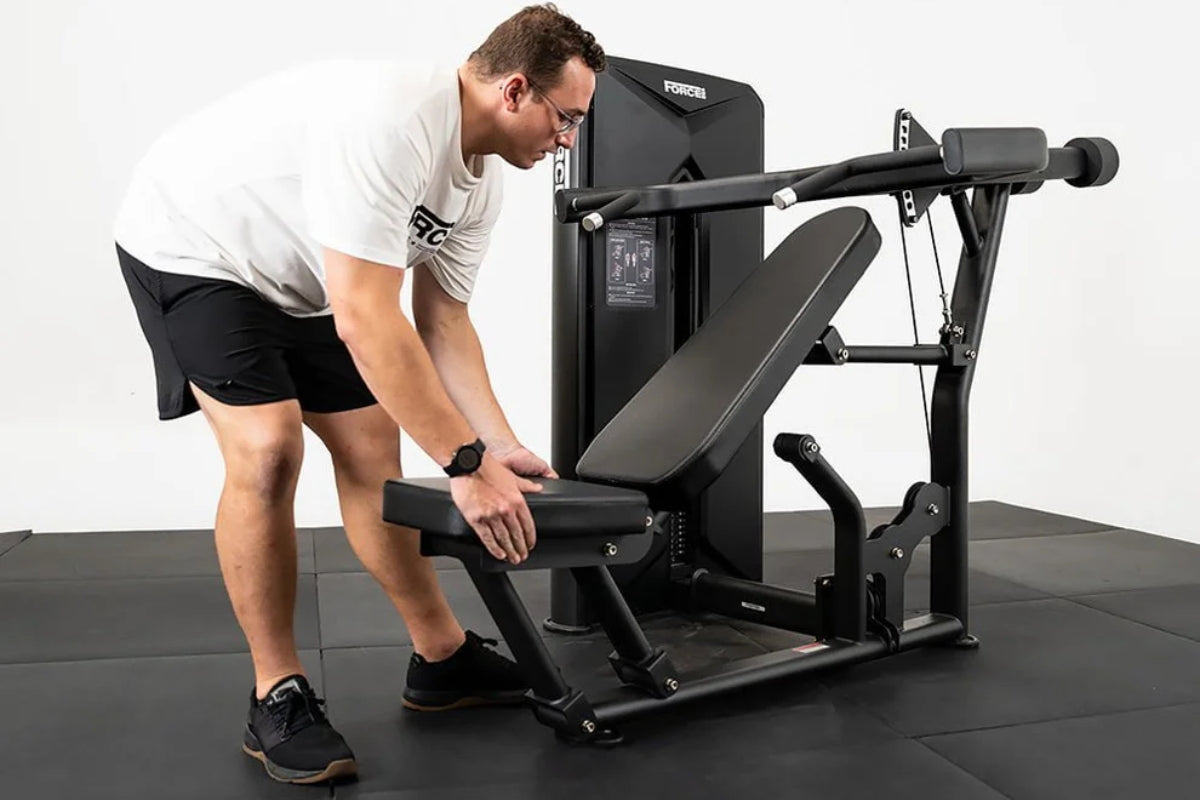 The Force USA Solitude Chest/Shoulder Press Machine is a high-quality, dual-function strength machine designed for full commercial use. It allows users to perform both chest and shoulder pressing exercises from a single station, making it ideal for maximizing space and functionality in gyms or training facilities. Built with a heavy-duty steel frame, the machine offers outstanding stability and durability to withstand rigorous daily use.