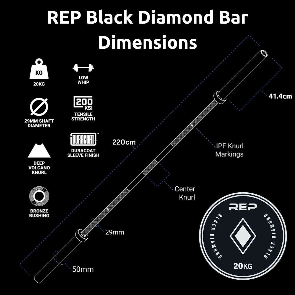 ● REP Black Diamond Power Bar does not include Olympic collars. Collars are purchased separately.