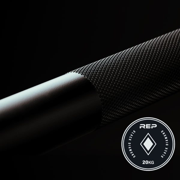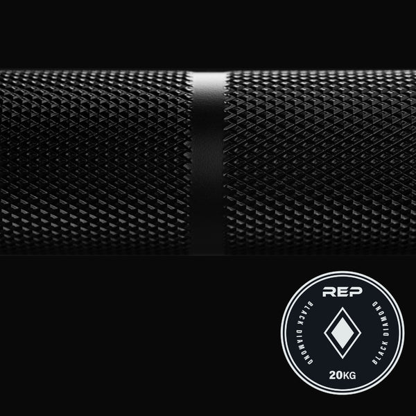 The Black Diamond power bar is REP’s top-tier powerlifting barbell. This 20kg (44.1lb) barbell features aggressive-depth, volcano-pattern knurling for those heavy deadlifts and center knurling to keep the barbell in place during back squats. The Black Diamond has IPF-standard knurl markings to help you get into the proper position for your lifts, and it features smooth sleeves for easy loading and unloading of the plates.