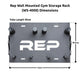 It’s stylish, too. The compact design with the REP logo in the middle looks great on your gym or garage wall. When properly installed, this storage rack is sturdy and will remain secure on your wall. The Wall Mounted Gym Storage Rack is 74.93 (L) x 49.53 (W) x 49.53 (H) cm. Equipment shown not included, but the mounting hardware is included.